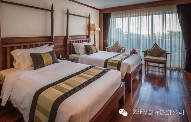 酒店設計高貴典雅,木質裝飾為主,典型的柬埔寨風格。