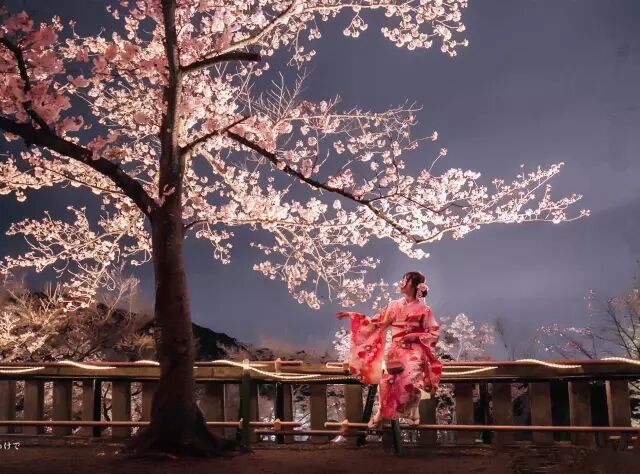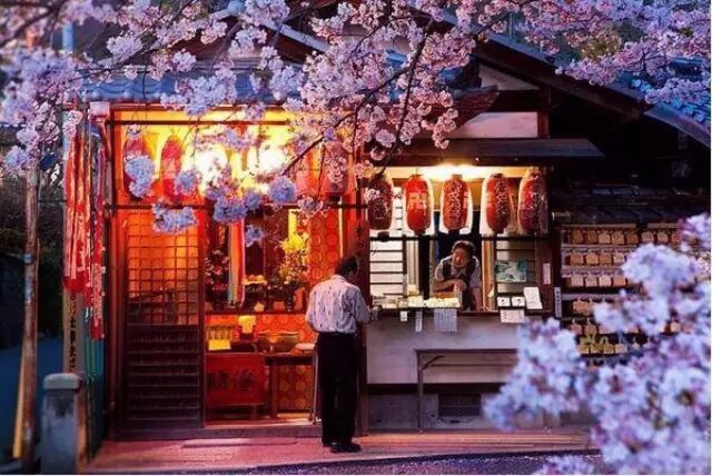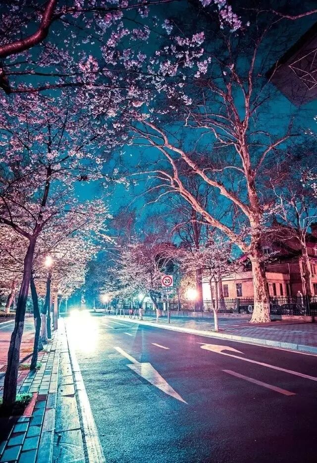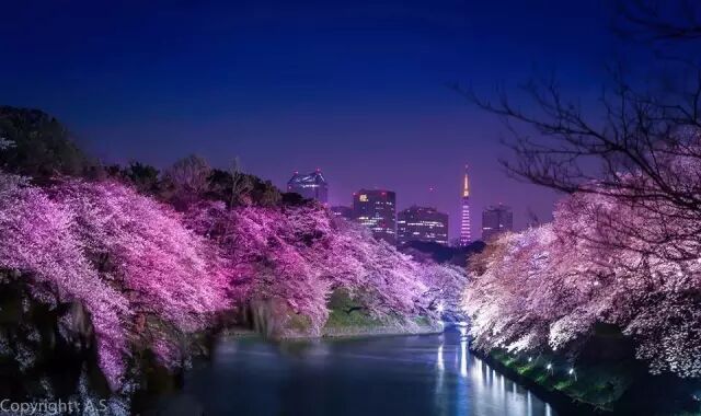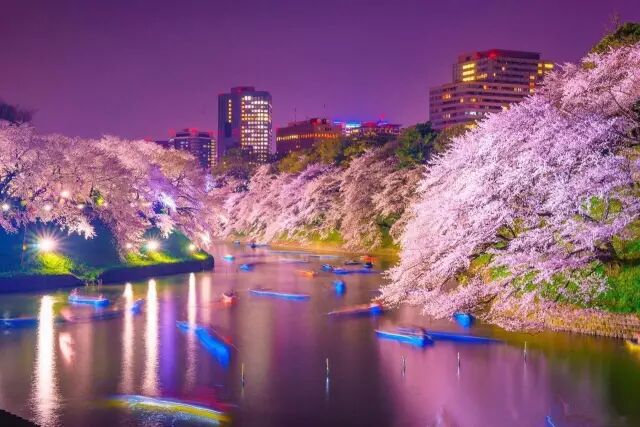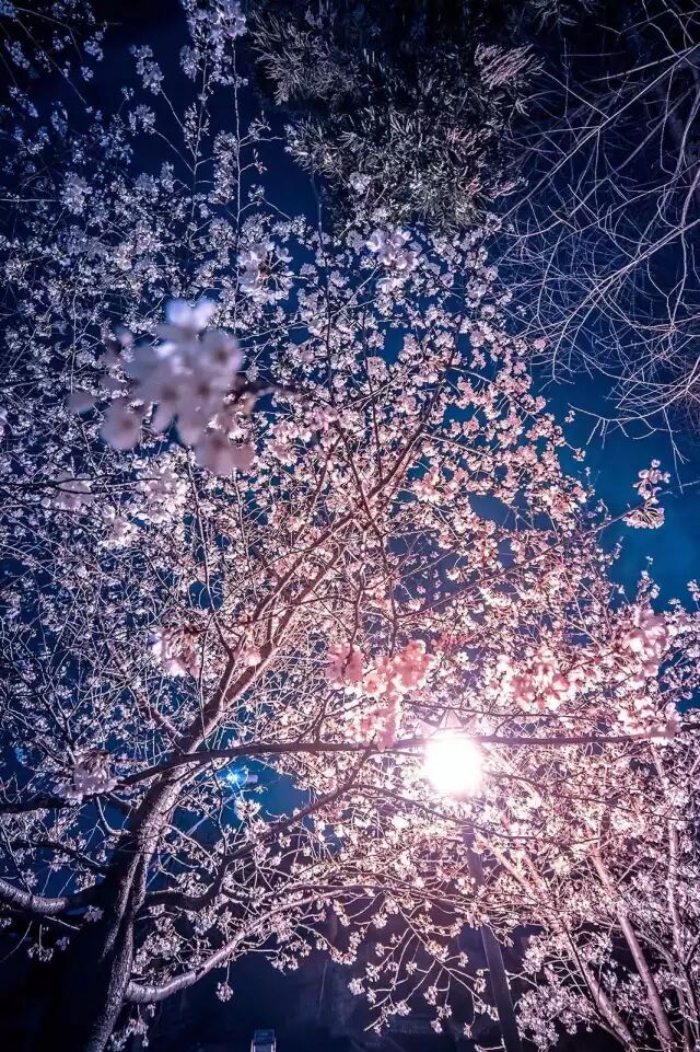 春季,真正把全世界游客吸引到日本的,还有夜幕降临后那一排排的樱花树。当华灯初上,樱花的另一种美---只属于夜晚的妖娆才显现出来。