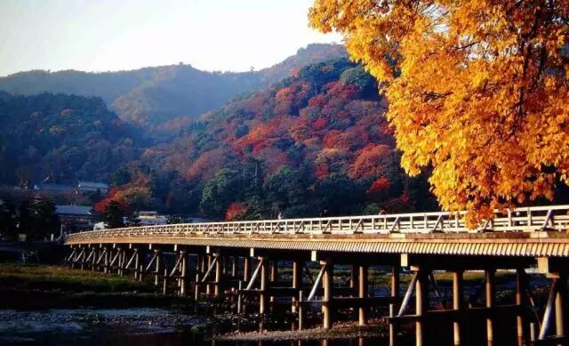 因樱花、红叶而闻名的岚山倒映在大堰川上,河水川流不息,横跨川流的就是渡月桥。渡月桥更为岚山的优雅锦上添花。传说就如同月亮自此渡桥一般,所以龟山天皇将其命名为‘渡月桥’。现在的渡月桥是昭和 9 年完成的,当初设计将其融入岚山的景物名胜。另外,附近还能坐游船一探岚山风华。